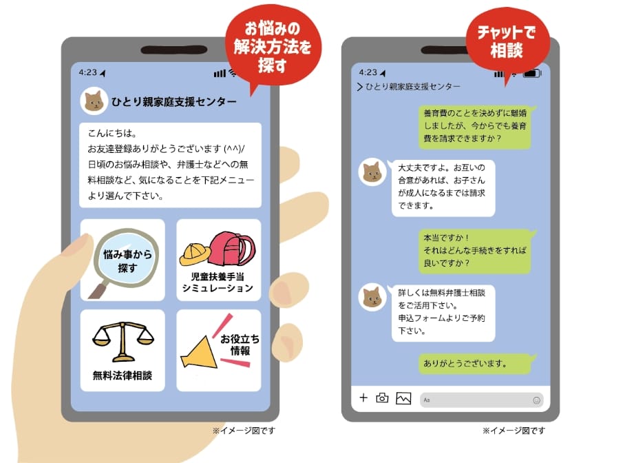 仕事のこと、生活のこと、親権や養育費のことなど、さまざまな相談に応じています。